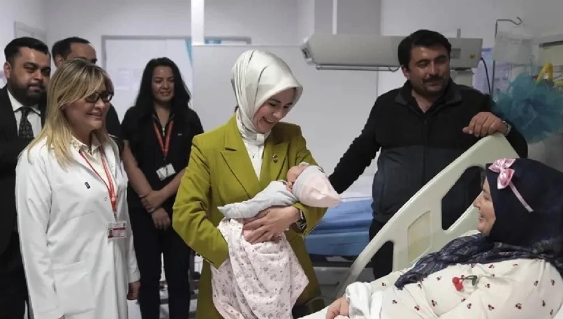 Aile ve Sosyal Hizmetler Bakanı Mahinur Özdemir Göktaş, Ankara’da yeni yılın ilk saatlerinde doğum yapan anneleri ziyaret etti. Bilkent Şehir Hastanesi’nde üçüncü bebeğini dünyaya getiren Gülsüm Kurt’u ziyaret eden Göktaş, bebeğin aileye “bereket ve huzur getirmesi” temennisinde bulundu. Göktaş, ardından 3 kilo 130 gram ağırlığında dünyaya gelen Alya bebeğin annesi Yasemin Ulutaş ile bir araya gelerek aileyi tebrik etti.