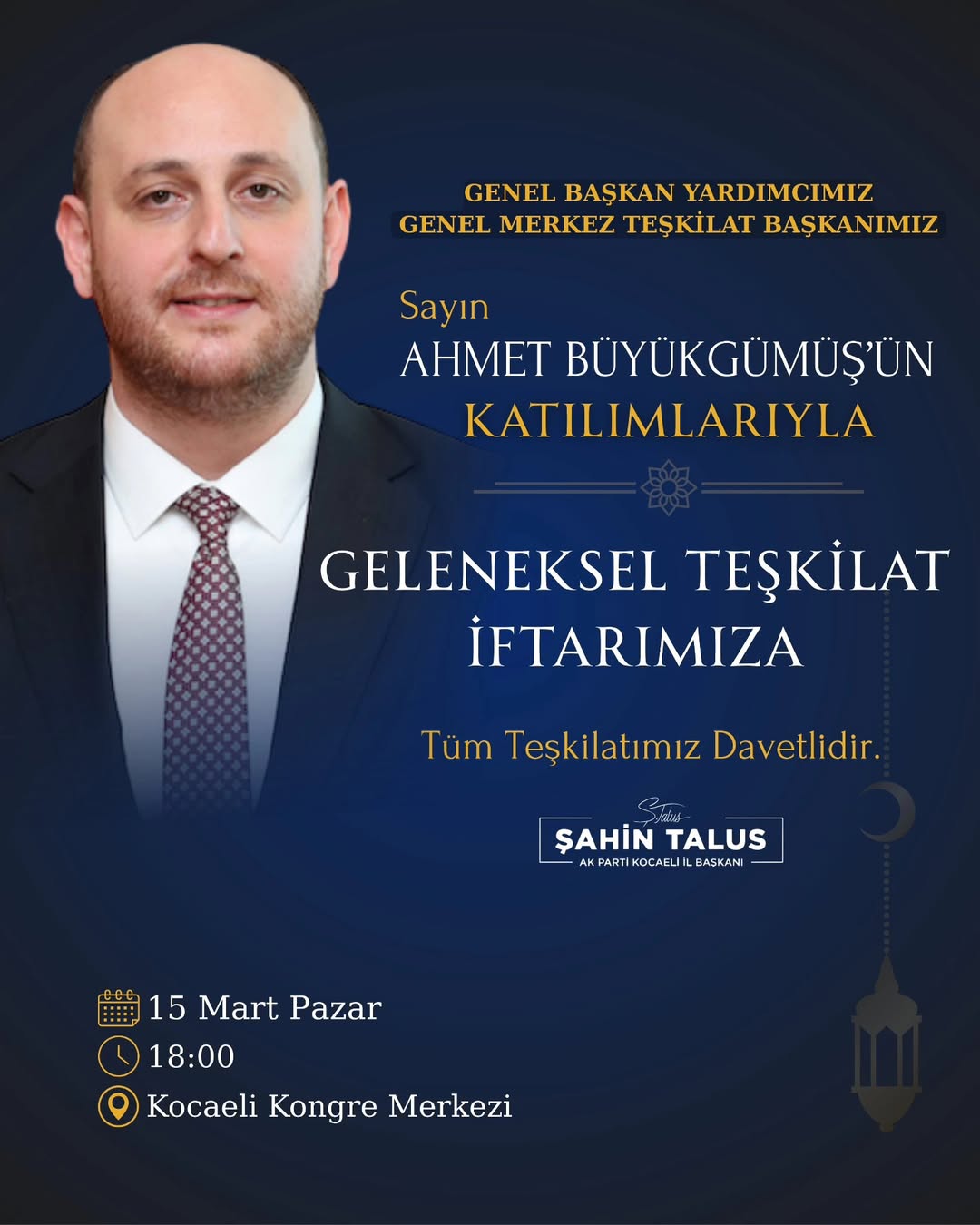 AK Kocaeli’nin iftarına Genel Başkan Yardımcısı Büyükgümüş katılacak