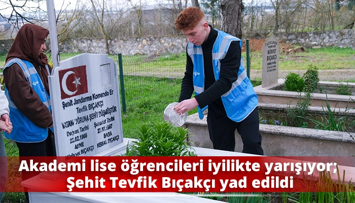 Kocaeli Büyükşehir Belediyesi’nin “İyilik Kılavuzu Yarışması” kapsamında hareket eden Akademi Lise öğrencileri, “Baş Tacı" görevini yerine getirdi. Gençler, Şehit Tevfik Bıçakçı’nın kabrini ziyaret ederek dualar okudu ve çiçek bıraktı.