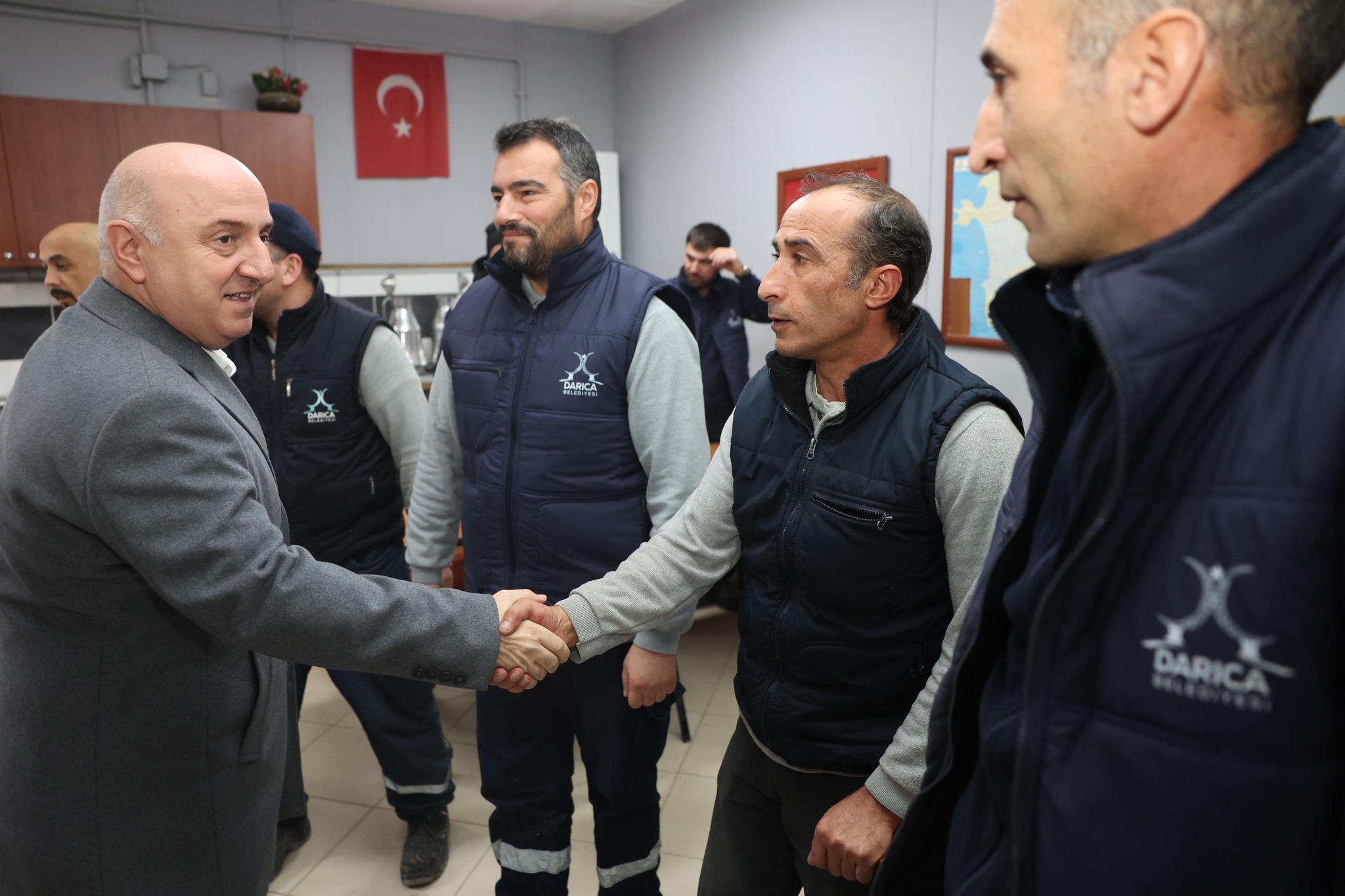 Geçirdiği operasyonun ardından ilk mesai gününe başlayan Darıca Belediye Başkanı Muzaffer Bıyık, başkan yardımcılarıyla değerlendirme toplantısı yaparak devam eden ve planlanan projeleri masaya yatırdı. Kaymakam Yaşar Dönmez’i ziyaret eden Bıyık, Fen İşleri şantiyesinde personelle bir araya gelerek Darıca için kararlı ve yoğun çalışma mesajı verdi.