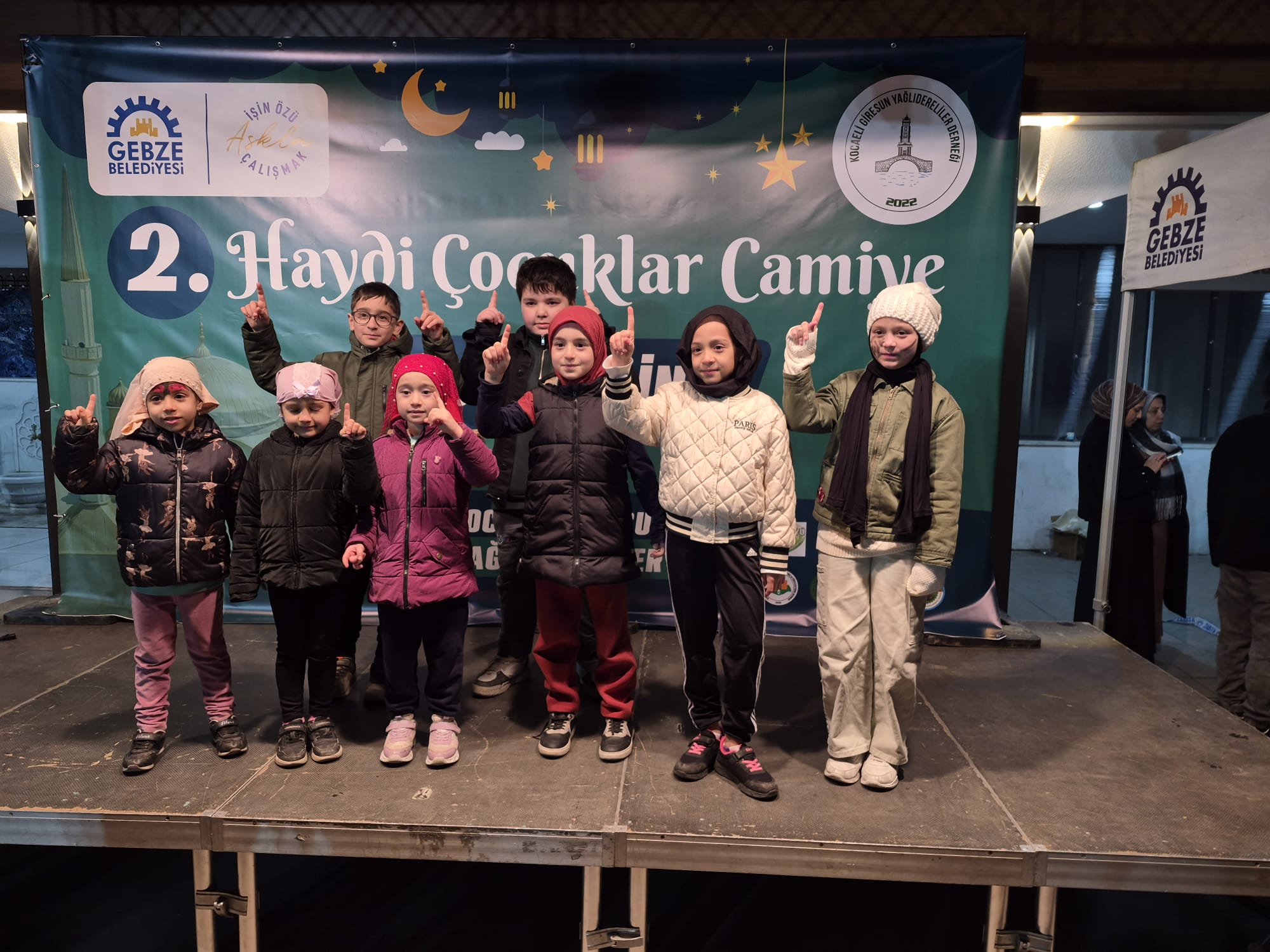 Gebze’de Ramazan ayının ruhu, Beylikbağı’nda kurulan gönül sofraları ve etkinliklerle en güzel haliyle yaşanıyor. Gebze Belediyesi ile Kocaeli Giresun Yağlıdereliler Derneği’nin ortaklaşa imza attığı program, her yaştan vatandaşın katılımıyla büyük bir coşkuya sahne oldu. Teravih namazı sonrası Sarı Camii Meydanı’nı dolduran yüzlerce Gebzeli, hem eğlenceyi hem de maneviyatı bir arada yaşadı. Programın odak noktası her zamanki gibi çocuklar oldu. Cami avlusunun kısa sürede şenlik alanına dönüştüğü gecede, geleneksel Türk tiyatrosunun unutulmaz kahramanları Hacivat ve Karagöz sahne aldı. Miniklerin kahkahaları eşliğinde sergilenen oyunun yanı sıra çocuk tiyatrosu ve yüz boyama etkinlikleri de geceye renk kattı. Etkinlik boyunca Gebze Belediyesi tarafından çocuklara özel hazırlanan Ramazan temalı kitapçıklar dağıtılırken, miniklerin mutluluğu görülmeye değerdi.