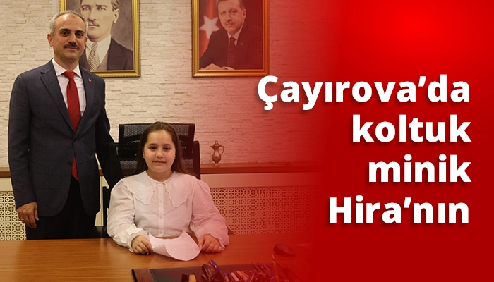 23 Nisan Ulusal Egemenlik ve Çocuk Bayramı etkinlikleri kapsamında, Çayırova Belediye Başkanı Bünyamin Çiftçi, koltuğunu Hira Aydın’a teslim etti. Çayırova Belediyesi Başkanlık makamında gerçekleştirilen programa Başkan Çiftçi’nin yanı sıra, Mehmet Akif İlkokulu Müdürü Emrullah Yıldız, Mehmet Akif İlkokulu Sınıf Öğretmeni Abdülkadir Taştan, 4. Sınıf Öğrencisi Hira Aydın ve ailesi katılım sağladı. Başkan Çiftçi, Hira Aydın ve çocukların 23 Nisan Ulusal Egemenlik ve Çocuk Bayramı’nı tebrik ederken, daha sonrasında koltuğunu minik başkana devretti. Başkanlık Makamına oturan Aydın ise şunları dile getirdi; “Öncelikle koltuğunu bana devreden sayın belediye başkanımız Bünyamin Çiftçi’ye teşekkür ederim. Bugün burada 23 Nisan Ulusal Egemenlik ve Çocuk Bayramı’nı kutlamak için, bir araya geldik. Bu anlamlı günü biz çocuklara armağan eden Büyük Lider Gazi Mustafa Kemal Atatürk’e saygı ve minnetlerimi sunuyorum. Bugün belediye başkanlığı koltuğuna oturmak benim için büyük bir heyecan değil, aynı zamanda büyük bir sorumluluktur. Çünkü biz çocuklar geleceğin yöneticileri, öğretmenleri, doktorları ve liderleriyiz.