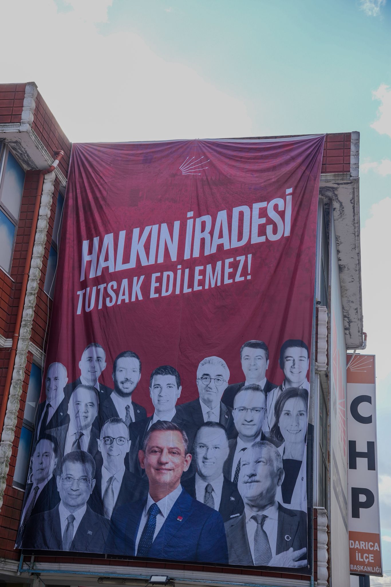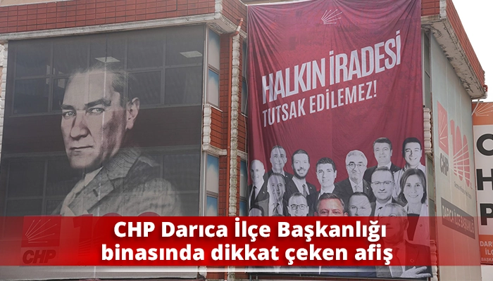CHP Darıca İlçe Başkanlığı binasında dikkat çeken afiş