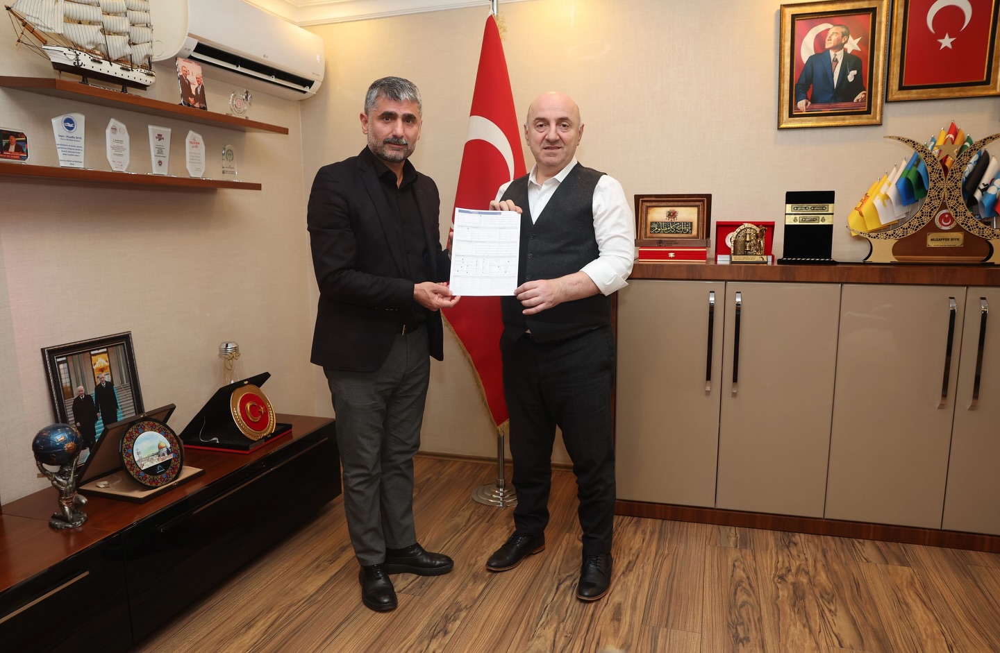Darıca Belediye Başkanı Muzaffer Bıyık, Darıca Cemevi ve Erenler Vakfı’nın yeni hizmet binası için inşaat ruhsatının imzalandığını açıkladı.