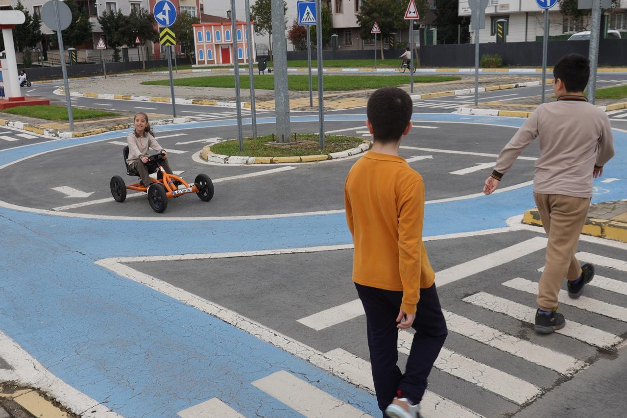 Gerçek trafik ortamına benzer şekilde hazırlanan eğitim alanında yer alan yollar, kavşaklar ve trafik işaretleri sayesinde öğrenciler öğrendikleri bilgileri uygulama fırsatı buluyor. Akülü araçlarla gerçekleştirilen uygulamalı eğitimlerde çocuklara trafik ışıklarına uyma, yaya geçitlerini doğru kullanma ve güvenli hareket etme alışkanlığı kazandırılıyor. Eğitim ve eğlencenin bir arada sunulduğu programlarla çocukların küçük yaşta trafik kültürü edinmeleri hedefleniyor. Darıca’daki okullardan öğrencilerin katılım sağladığı Trafik Eğitim Parkı’nda gerçekleştirilen çalışmalarla çocukların güvenli trafik davranışı kazanmaları amaçlanırken, eğitim programları yıl boyunca düzenli olarak devam ediyor.
