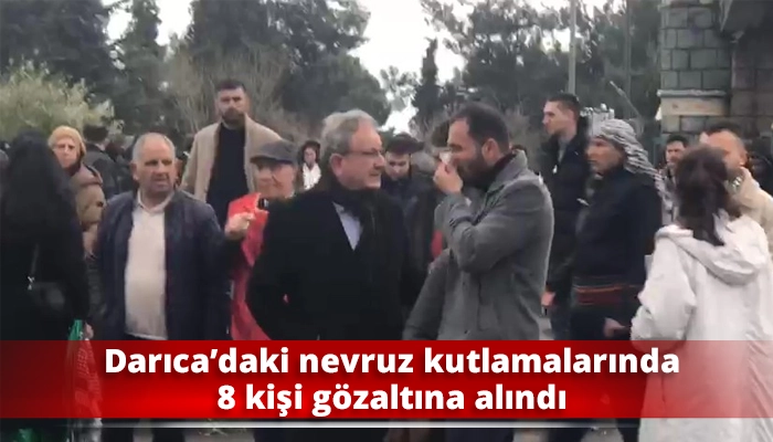 Darıca’daki nevruz kutlamalarında çıkan gerginlikte 8 kişi gözaltına alındı. Darıca Millet Bahçesi’nde düzenlenen Nevruz kutlamalarında bazı vatandaşlar parti bayraklarıyla alana girmek istedi. Bayrakların sopalı olması nedeniyle polis ekipleri girişe izin vermeyince grup ile polis arasında sözlü tartışma yaşandı. Kısa sürede büyüyen gerginliğe polis müdahale etti. Olaylarda 8 kişi gözaltına alındı.