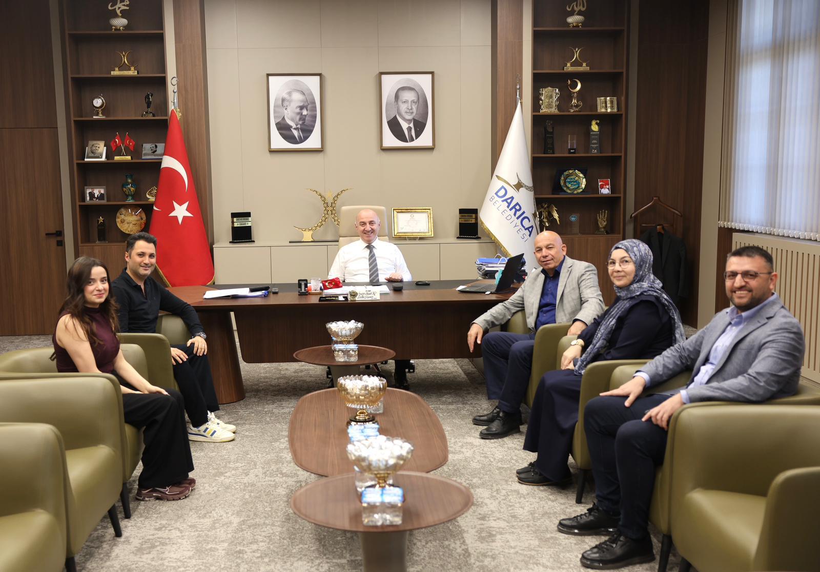 Gazetemiz Genel Yayın Yönetmeni Abbas Sır ve çalışma arkadaşlarımız, yeni hizmet binasına taşınan Darıca Belediye Başkanı Muzaffer Bıyık’ı makamında ziyaret ederek “hayırlı olsun” dileklerini iletti. Ziyarette Darıca’nın değişim sürecine dair önemli açıklamalarda bulunan Başkan Bıyık, kamu kurumlarındaki dağınıklığı bitirdiklerini ve ilçeye yakışır bir kimlik kazandırdıklarını vurguladı.