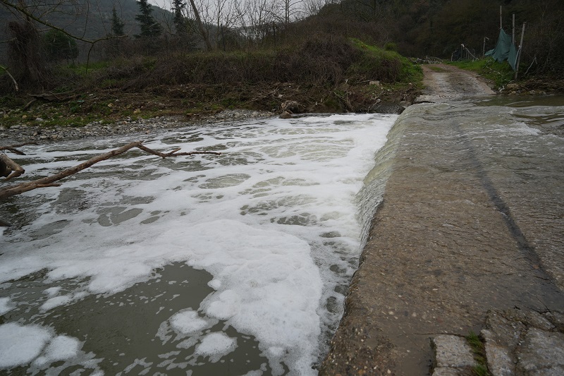 Tavşanlı mevkiinde dere yatağında zaman zaman yoğun köpük tabakaları oluşurken, suyun rengindeki değişim ve çevreye yayılan ağır koku dikkati çekiyor. Tarım arazilerinin zarar gördüğü ve suya yaklaşmanın güçleştiği bölgede, kalıcı çözüm bekleniyor.
