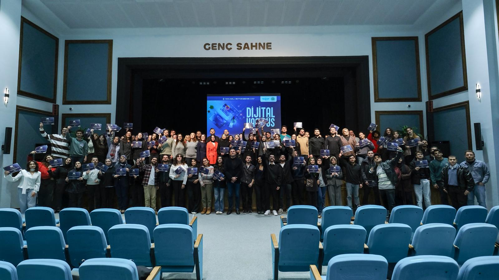 Kocaeli Büyükşehir Belediyesi ve Kocaeli Üniversitesi Sürekli Eğitim Merkezi işbirliğiyle yürütülen “Dijital Kampüs Eğitim Programları” kapsamında eğitimlerini başarıyla tamamlayan 235 genç katılımcı, Halkevi Gençlik Merkezi’nde gerçekleştirilen törenle sertifikalarını aldı.