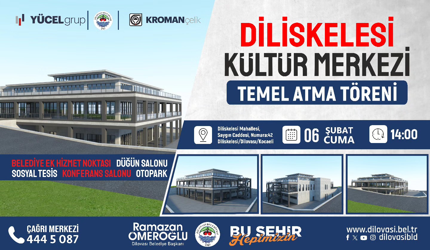 Dilovası Belediyesi, ilçenin sosyal ve kültürel altyapısını dönüştürecek vizyon projelerinden birini daha hayata geçiriyor. Diliskelesi Mahallesi’nin en büyük ihtiyaçlarından biri olan ve çok fonksiyonlu yapısıyla dikkat çeken Kültür Merkezi projesinde ilk harç törenle dökülecek. Belediye Başkanı Ramazan Ömeroğlu, projenin sadece bir bina değil, şehrin geleceğine yapılan bir yatırım olduğunu vurguladı. Temel atma törenine tüm hemşehrilerini davet eden Belediye Başkanı Ramazan Ömeroğlu, “Şehrimizin geleceğini birlikte inşa ediyor, birlikte güzelleştiriyoruz. Diliskelesi Kültür Merkezi projemiz, halkımıza verdiğimiz sözlerin birer birer gerçekleştiğinin bir nişanesidir” dedi. Tören, 6 Şubat Cuma günü saat 14.00’da projenin uygulanacağı alan olan Diliskelesi’nde gerçekleştirilecek. İlçe protokolü ve vatandaşların yoğun katılım göstermesi beklenen törenle, Dilovası’nın hizmet siyasetine yeni bir halka daha eklenmiş olacak.