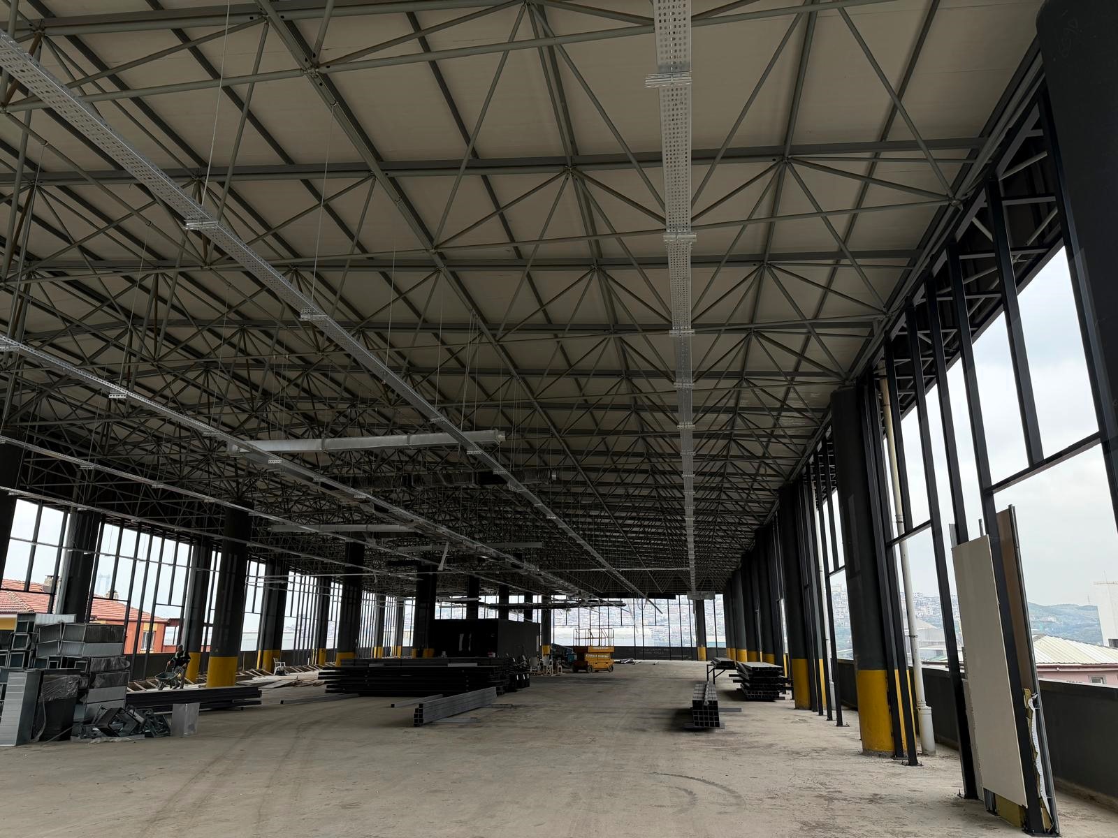 Kocaeli genelinde hayata geçirdiği projelerle vatandaşların yaşam kalitesini artıran Kocaeli Büyükşehir Belediyesi, ilçe belediyelerinin daha kaliteli hizmet sunabilmesi için yatırımlarını sürdürüyor. Bu kapsamda Büyükşehir tarafından inşa edilen Dilovası Katlı Otoparkı, Dilovası Belediyesi Hizmet Binası’na dönüştürülüyor. Fen İşleri Dairesi Başkanlığı tarafından yürütülen çalışmalar kapsamında çelik duvar imalatlarının profil boyama işleri, zemin kat havalandırma tesisatı, 1. bodrum kat dış cephe karkas montajı ile 1. ve 2. kat yangın hattı montajları devam ediyor. Zemin kat elektrik tava montajı ile dış cephe çelik duvar karkası kaynak yerlerinin astar boyası ve tüm profillerin son kat boyası ise tamamlandı.