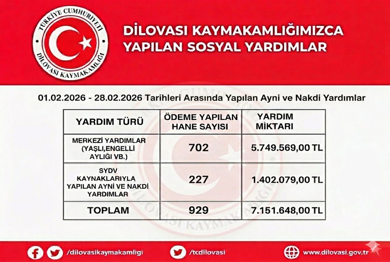 Dilovası Kaymakamlığı, ilçedeki sosyal devlet anlayışını rakamlarla ortaya koydu. 1-28 Şubat 2026 tarihlerini kapsayan sosyal yardım raporuna göre, binlerce vatandaşın yaşam kalitesini artırmak ve ihtiyaçlarını gidermek amacıyla geniş kapsamlı bir ödeme takvimi uygulandı. Kaymakam Dr. Metin Kubilay, “Devletimizin tüm imkanlarını ve şefkat elini ihtiyaç sahiplerine ulaştırmaya devam edeceğiz” diyerek kararlılık mesajı verdi. Şubat ayı içerisinde Sosyal Yardımlaşma ve Dayanışma Vakfı (SYDV) aracılığıyla toplam 929 haneye 7 milyon 151 bin 648 TL ödeme yapıldı. Bu yardımların detayları şu şekilde paylaşıldı: