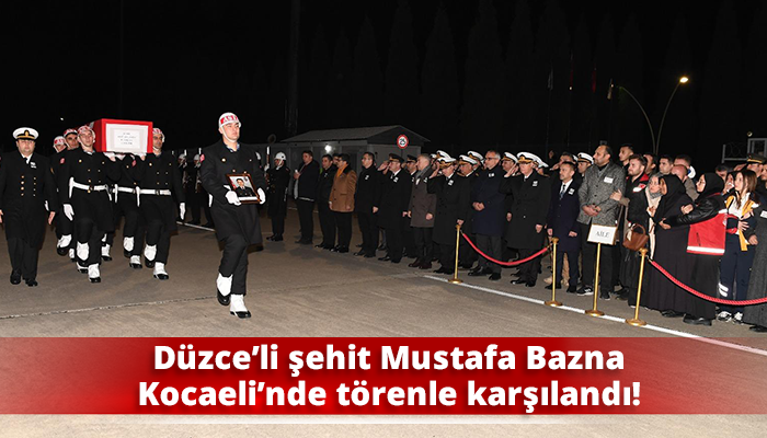 3 Kasım 2022 tarihinde Pençe Kilit Operasyonları esnasında şehit düşen ve geçtiğimiz günlerde naaşına ulaşılan Şehit Piyade Uzman Çavuş Mustafa Bazna, Cengiz Topel Havalimanında ailesi ile birlikte karşılandı. Karşılama töreninde Vali İlhami Aktaş, Donanma Komutanı Oramiral Kadir Yıldız, Deniz Eğitim ve Öğretim ve Garnizon Komutanı Tümamiral Hüseyin Tığlı, Kocaeli Büyükşehir Belediyesi Başkan V. Hasan Soba, Vali Yardımcısı İsmail Gültekin, İl Emniyet Müdürü Faruk Karaduman, İl Jandarma Komutanı J. Alb. Murat Bozkurt ve Aile ve Sosyal Hizmetler İl Müdürü Kamil Tüylüoğlu katıldı. Şehidimizin emanetleri olan ailesi ile bir süre görüşen, onların acısını paylaşan Vali İlhami Aktaş, vatan uğruna canını feda eden Piyade Uzman Çavuş Mustafa Bazna’ya ve tüm şehitlerimize Allah’tan rahmet dileyerek her zaman yanlarında olacaklarını ifade etti. Karşılama töreninin ve yapılan duanın ardından Piyade Uzman Çavuş Mustafa Bazna’nın naaşı ebedi âleme uğurlanmak üzere memleketi Düzce iline gönderildi.