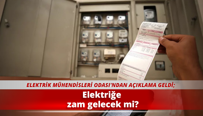 Elektrik fiyatlarına zam geleceğine yönelik iddialara Elektrik Mühendisleri Odası'ndan açıklama geldi. Açıklamada "Aylık ortalama tüketimi 417 kWh'in üstünde kalan milyonlarca haneye yüksek tüketimli sanayi kuruluşları gibi fatura kesilecektir. Eğer uygulama bu haliyle yaşama geçerse, tüketimi aynı kalsa da bu hanelere kesilecek fatura spot piyasaya göre her ay değişen yüksek değerlere ulaşacaktır" denildi.