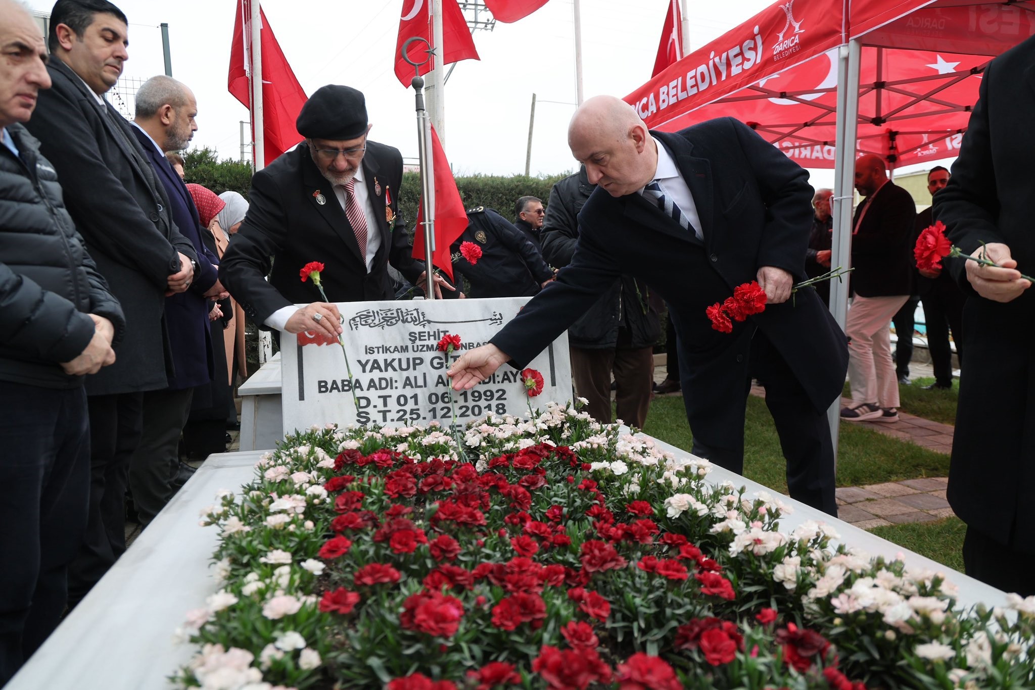 Darıca'da düzenlenen tören; Kaymakam Yaşar Dönmez, Belediye Başkanı Muzaffer Bıyık, protokol üyeleri ve vatandaşların yoğun katılımıyla gerçekleştirildi. Protokol üyeleri tarafından Atatürk Anıtı'na çelenk sunulmasıyla başlayan anma programı, daha sonra şehitlikte devam etti. Şehitlerimiz için Kur'an-ı Kerim okunup dualar edilmesinin ardından, Başkan Bıyık ve beraberindeki katılımcılar şehit kabirlerine tek tek karanfil bıraktı.