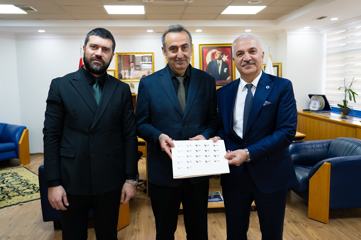 Gebze Ticaret Odası, kurumlar arası iş birliği ve kurumsal temsil faaliyetleri kapsamında anlamlı bir buluşmaya imza attı. Gebze PTT Müdürü Rıza Doğru, GTO Başkanı Abdurrahman Aslantaş’ı ziyaret ederek odanın kurumsal kimliğini yansıtan özel basım pulları takdim etti. GTO Genel Sekreteri Av. Arb. Çağrı Solak’ın da hazır bulunduğu ziyarette, odanın resmi yazışmalarında ve kurumsal gönderilerinde kullanılmak üzere PTT tarafından hazırlanan kişisel posta pulları teslim alındı. Gebze Ticaret Odası’nın logosunu ve kurumsal görsellerini taşıyan pullar, odanın prestijini posta gönderilerine de taşımış olacak.