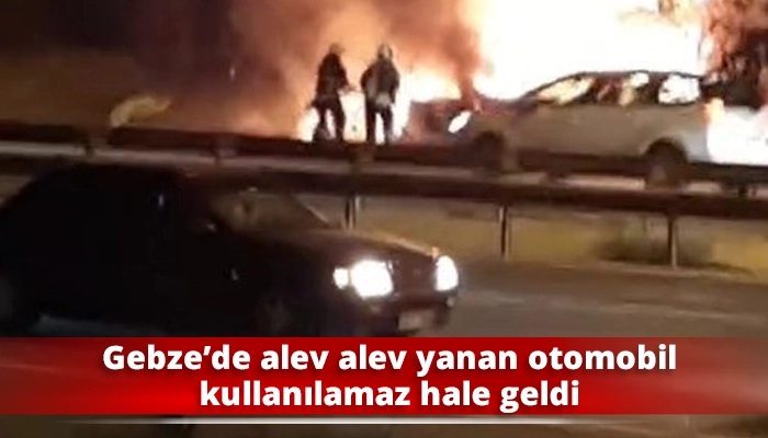 Gebze’de alev alev yanan otomobil kullanılamaz hale geldi