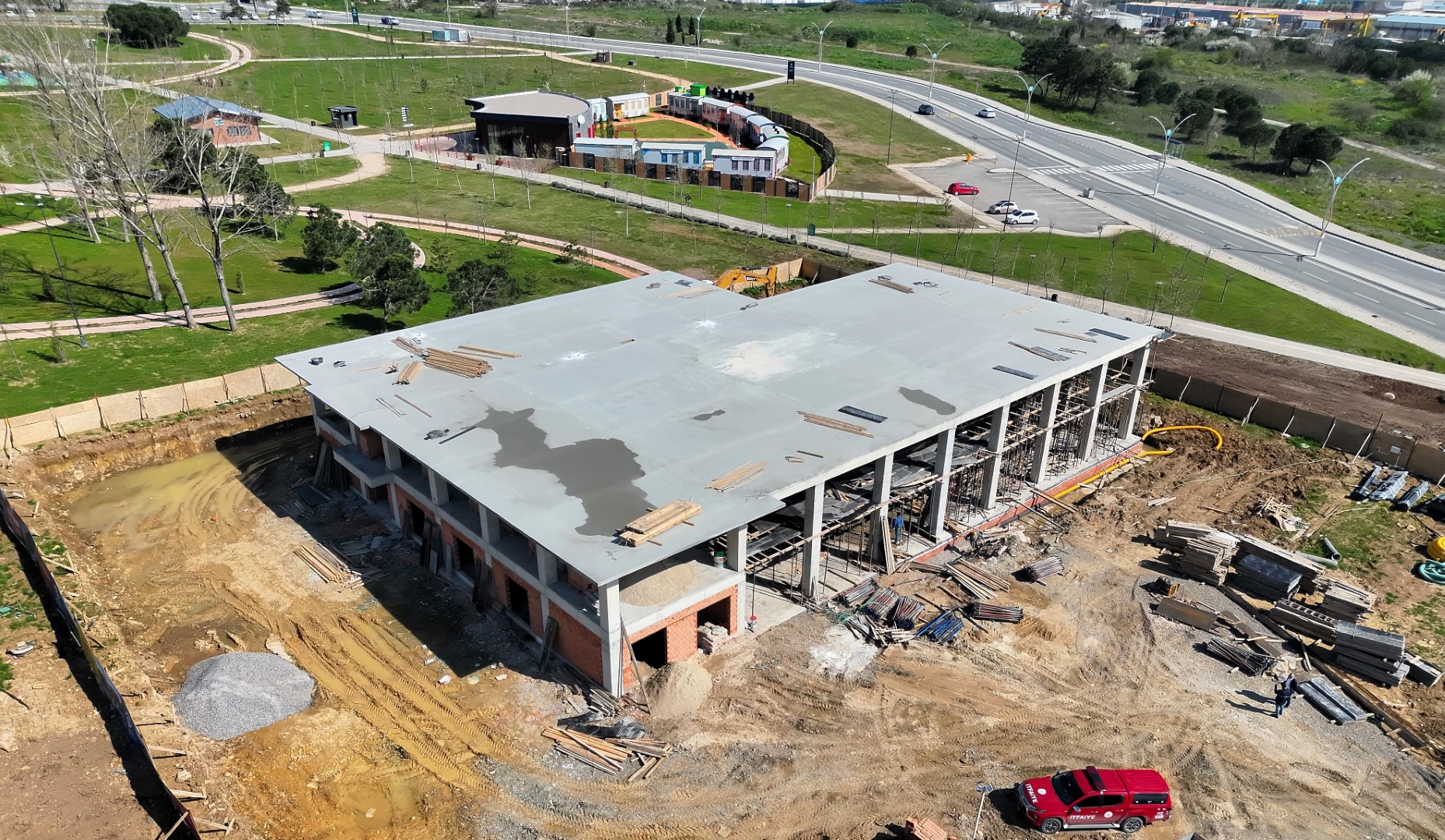 Fen İşleri Dairesi Başkanlığı’na bağlı ekipler, Gebze’de inşa edilen yeni itfaiye binası için çalışmalarını hız kesmeden sürdürüyor. Yakın zamanda Gebze Millet Bahçesi içerisindeki yeni yerinde modern imkânlarla hizmet vermeye başlayacak olan müfreze binasında, temel betonu atılırken kalıp montajlarına da başlandı. Araç, ekipman ve personel kapasitesiyle Türkiye’de örnek gösterilen bir itfaiye teşkilatına sahip olan Kocaeli Büyükşehir Belediyesi, Gebze’ye kazandıracağı yeni hizmet binasıyla gücüne güç katacak.