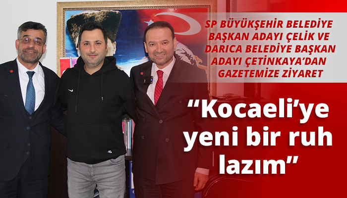 Saadet Partisi Kocaeli Büyükşehir Belediye Başkan adayı Nurettin Çelik, Darıca Belediye Başkan adayı Selim Çetinkaya, İl Başkanı Halil Kayın, il ve ilçe yöneticileri gazetemizi ziyaret etti. Ziyarette konuşan Çelik, “Benim vizyonuma erişme şansları yok. Şehrimizin yaşam kalitesini arttıracağız. Kocaeli’ye yeni bir ruh lazım” dedi.