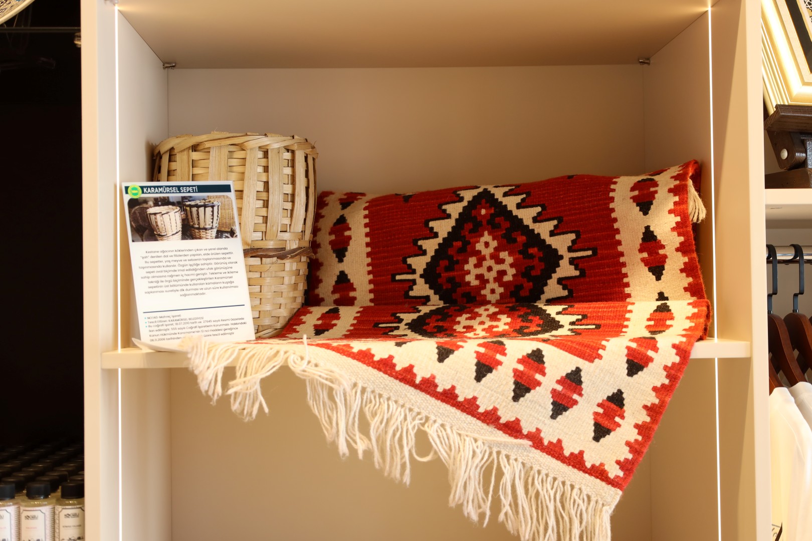 Mağazada Kocaeli’nin kültürel mirasını temsil eden coğrafi işaretli ürünler de bulunuyor. “Hereke İpek Halısı”, “Kandıra Bezi”, “Karamürsel Sepeti” ve ”Gölcük Döşeme Bebeği” gibi geleneksel ürünler ziyaretçilerin ilgisini çekiyor. Bunun yanı sıra Kocaeli’nin farklı bölgelerine özgü kokular ve kartpostallar da mağazada yer alıyor. Kocaeli Büyükşehir Belediyesi, hatıra mağazalarında kentin değerlerini ve güzelliklerini yansıtan ürünleri bayram alışverişi için satışa sunuyor. Milli İrade Meydanı’ndaki mağazada lisanslı KS Store, KOMEK Sepeti ve Ormanya ürünleri bulunurken; İzmit Kent Meydanı’ndaki mağazada ağırlıklı olarak Ormanya ürünleri, KOMEK Sepeti ve diğer yerel ürünler satışa sunuluyor.