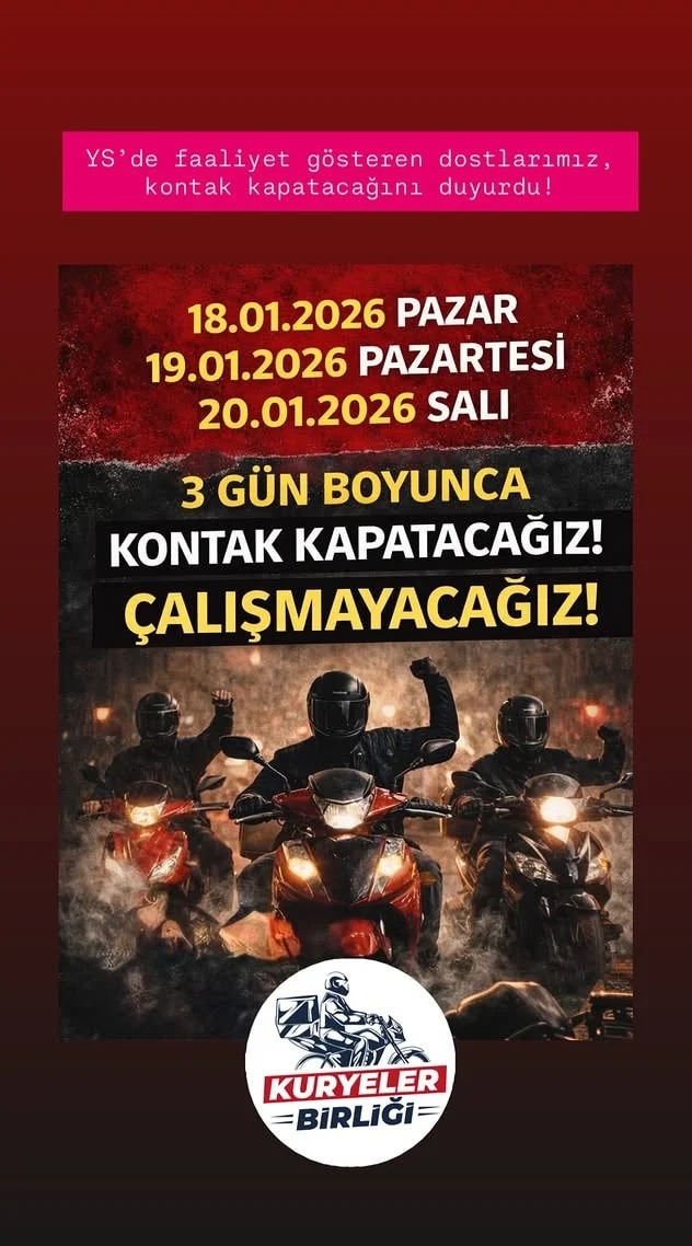 Kuryeler ise bu rakamların sahada karşılığının olmadığını ifade ediyor. Esnaf kurye olarak çalışanların sabit mesai saatlerinin bulunmadığını, gelirlerin tamamen çalışma süresi ve teslimat sayısına bağlı olduğunu belirten kuryeler, artan giderler nedeniyle net kazançlarının eridiğini dile getiriyor. Esnaf kuryeler; motosiklet, ekipman, sigorta, yakıt, bakım masrafları ile BAĞ-KUR primleri, muhasebe ücretleri ve vergi yükümlülüklerini kendi ceplerinden karşılıyor. Bu giderler düşüldüğünde açıklanan gelir tablolarının gerçeği yansıtmadığı görüşü öne çıkıyor. Bu gerekçelerle kuryeler, 18-19-20 Ocak tarihlerinde kontak kapatarak paket dağıtmayacaklarını açıkladı. Eylemin tüm kuryeleri kapsamadığı, katılmayanların ise kendi çalışma planları dahilinde dağıtıma devam edeceği belirtildi.