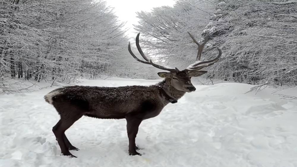 Kızıl geyikler karlı doğada görüntülendi