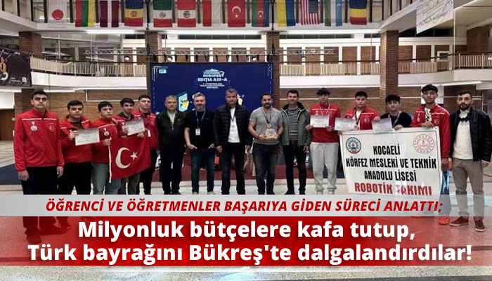 Romanya'nın başkenti Bükreş'te düzenlenen 'RoboChallenge 2024'te Türkiye'yi temsil eden Körfez Mesleki ve Teknik Anadolu Lisesi, büyük bütçelere sahip rakiplerini geride bırakıp altın madalya kazandı. Türkiye yarışma genelinde toplamda 3 altın madalya elde etti.