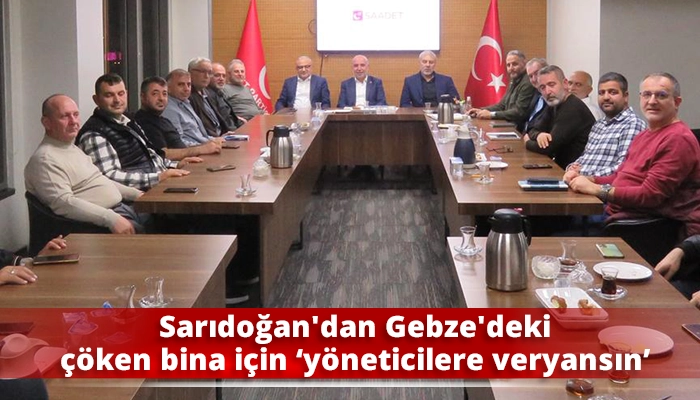 Saadet Partisi İl Başkanı Recep Sarıdoğan, haftalık il yönetim kurulu toplantısında Gebze’de çöken binadaki 5 kişilik aileden 4 kişisinin hayatını kaybetmesiyle ilgili olayı gündemine aldı.