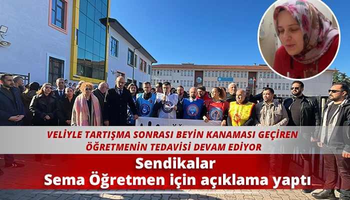 11 Aralık’ta Nenehatun İlkokulu’nda görevi sırasında bir veli ile tartışmasının ardından beyin kanaması geçiren Öğretmen Sema Özdemir için eğitim sendikaları tek ses oldu.