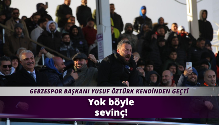 Çayırovaspor ile oynana kent derbisinde son dakika golüyle 3 puanı hanesine yazdıran Gebzespor'da yeni başkan Yusuf Öztürk, son dakika golü sonrası büyük sevinç yaşadı. Maçı büyük bir heyecanla takip eden ve adeta yerinde oturamayan Başkan Yusuf Öztürk, uzatmaların 7.dakikasında gelen golden sonra kendinden geçti. Maçın son düdüğünün ardından soluğu saha içinde alan Başkan Öztürk, galibiyeti futbolcular ve taraftarlar ile birlikte kutladı.